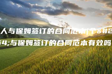 个人与保姆签订的合同范本 第一篇甲方:乙方:身份证号码:身份证号码:家庭住址:家庭住址:根据《^v^合同法》等有关法律、法规的规定,甲乙双方本着平等、自愿的原则就乙方为甲方提供保姆服务有关事宜,达成如。