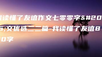 我读懂了友谊作文七零零字作文 第一篇温暖的阳光透过玻璃洒在书桌前,照亮的是成长中与朋友的相片。照片中的我们笑得是那样灿烂,但现在我的心中却感受不到一丝慰藉。友谊,究竟是什么?我反而越成长,越无法读懂了。